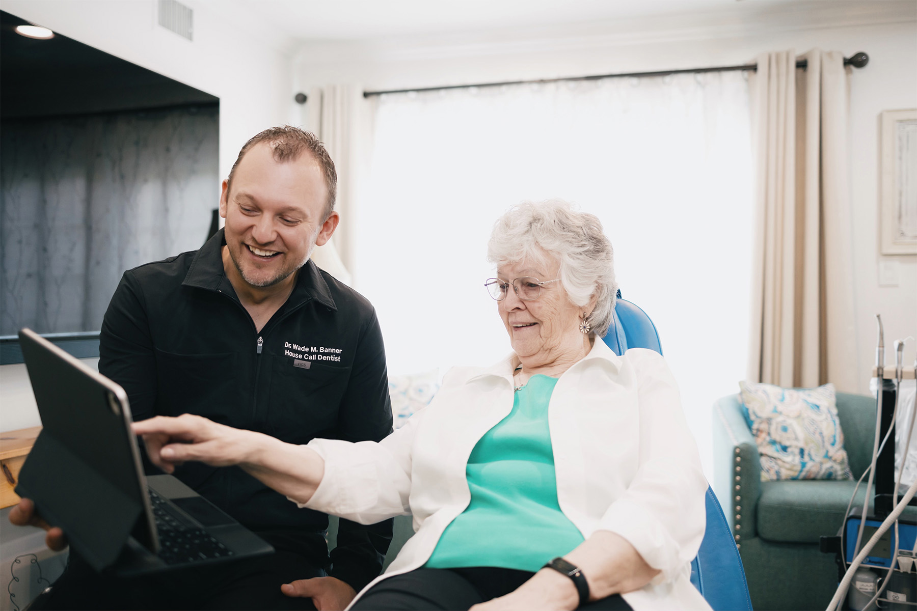 Dr. Banner & Karen visited my husband in a Board & Care facility. Exam, X-rays, cleaning-they were very efficient & professional. They were able to work around his limitations with respect and understanding. A very good experience.